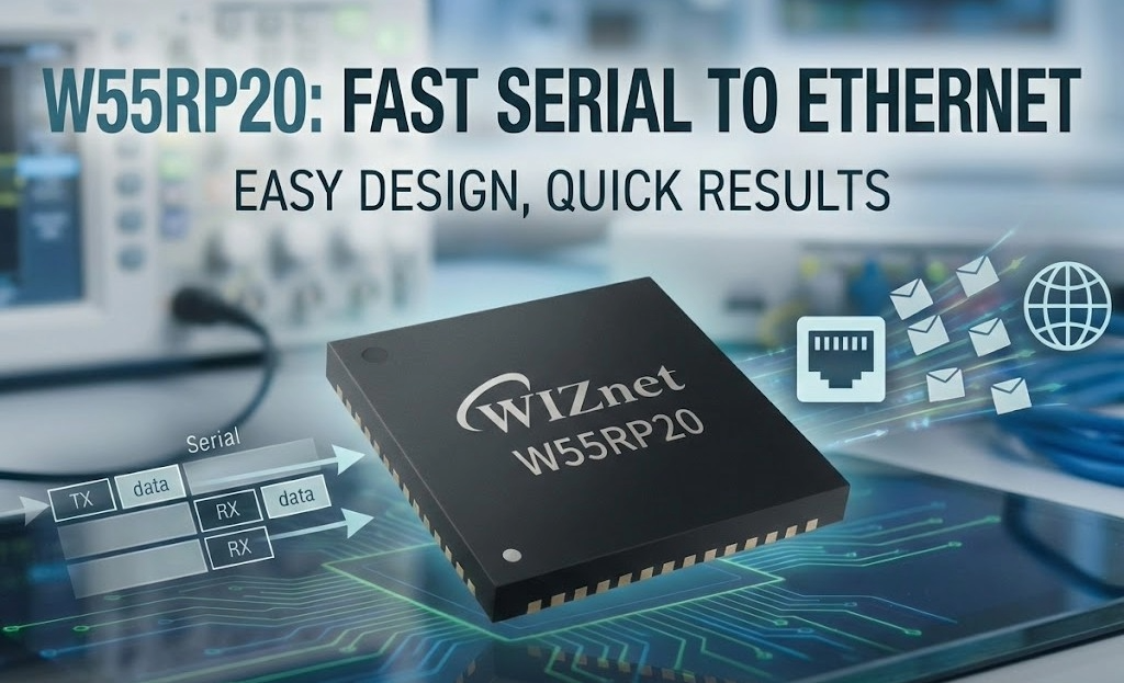WIZnet 'Serial to Ethernet' product is a protocol converter that transmits data sent by serial equipment as TCP/IP data and converts the TCP/IP data received through the network back into serial data to the serial equipment.