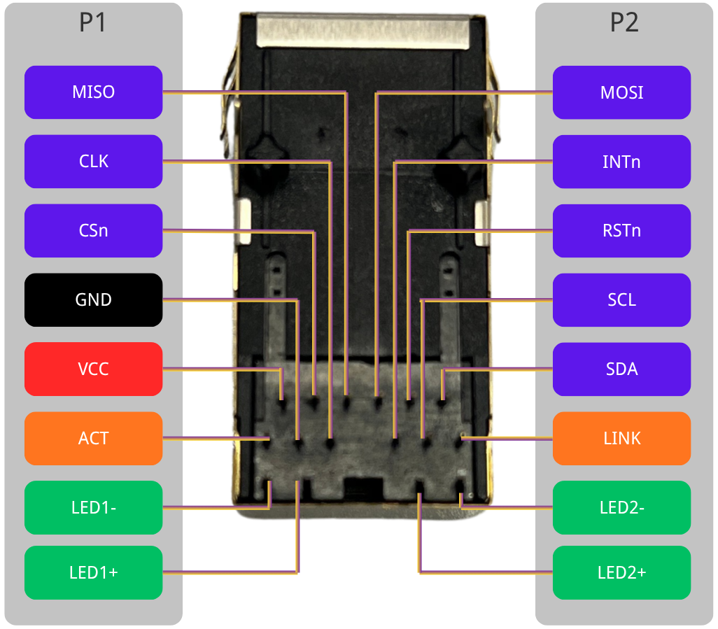 | 2 | I | INTn | Interrupt output (low-active) — indicates socket events like connection, disconnection, data reception, and WOL |