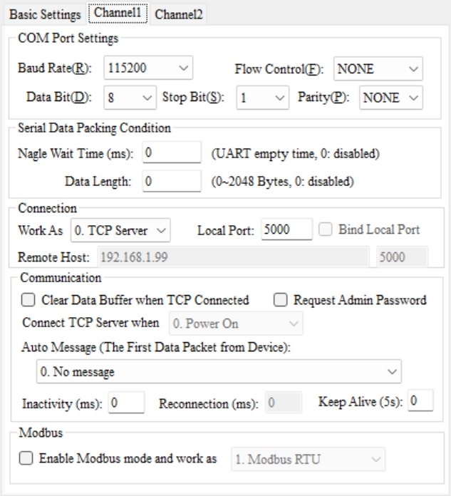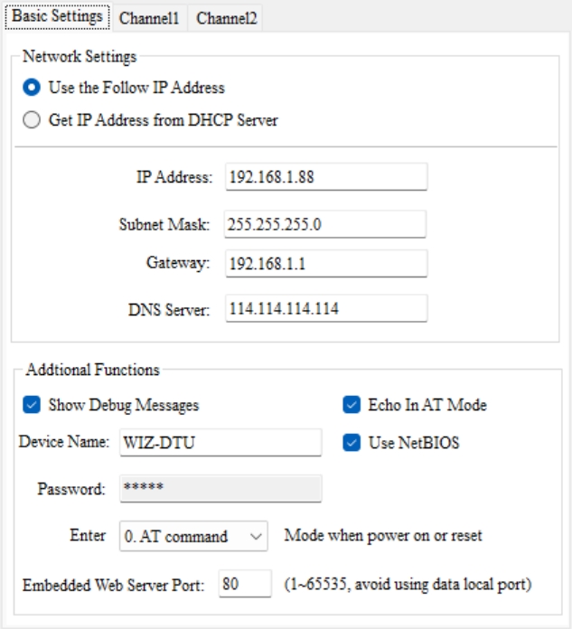 For WIZ-IP32, it includes Basic Settings and Channel1 configurations.