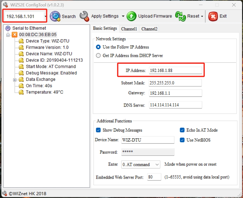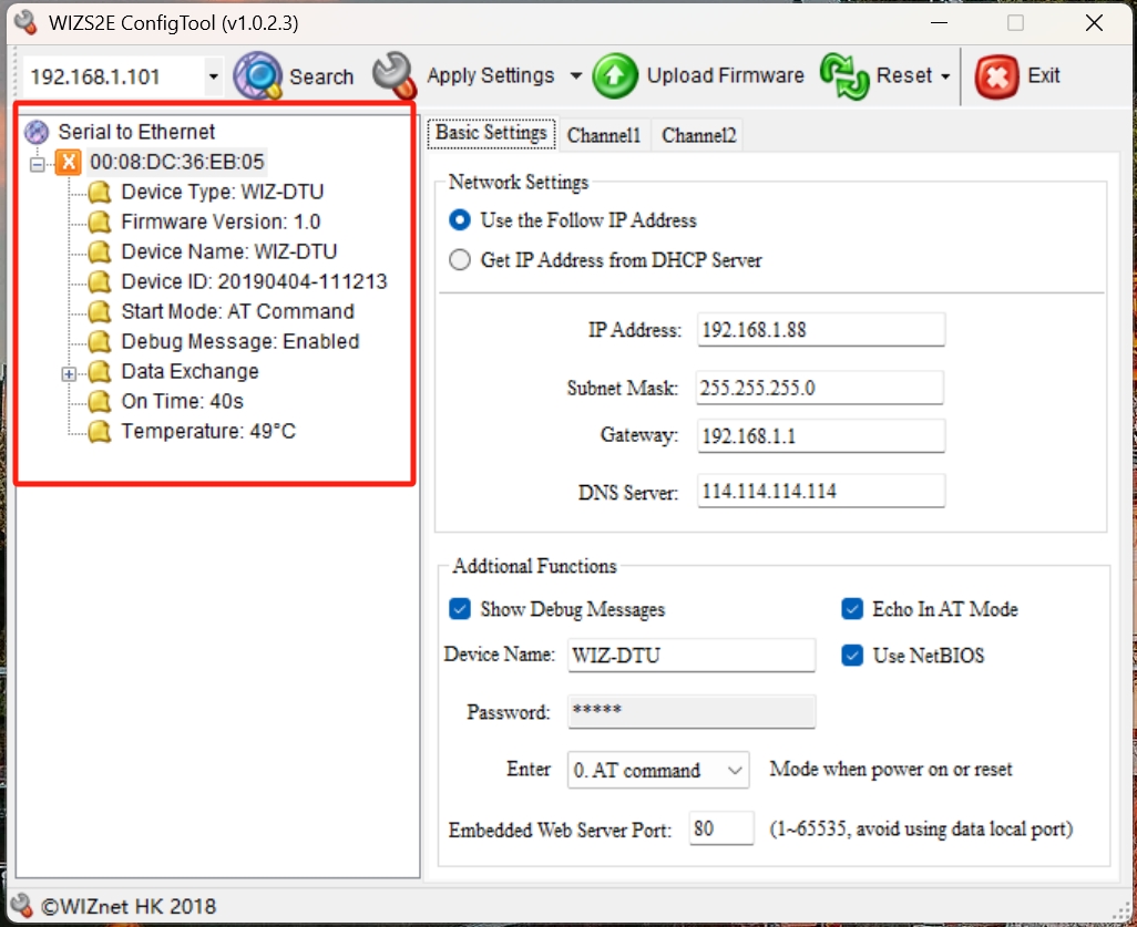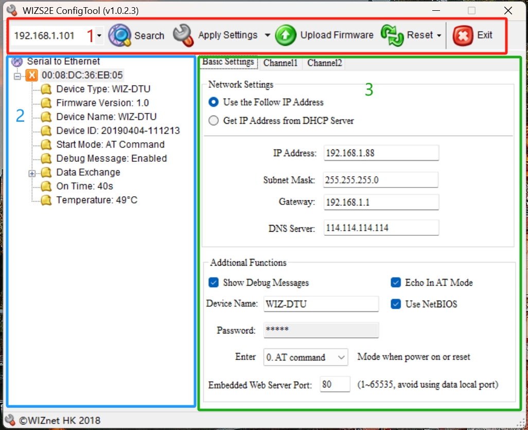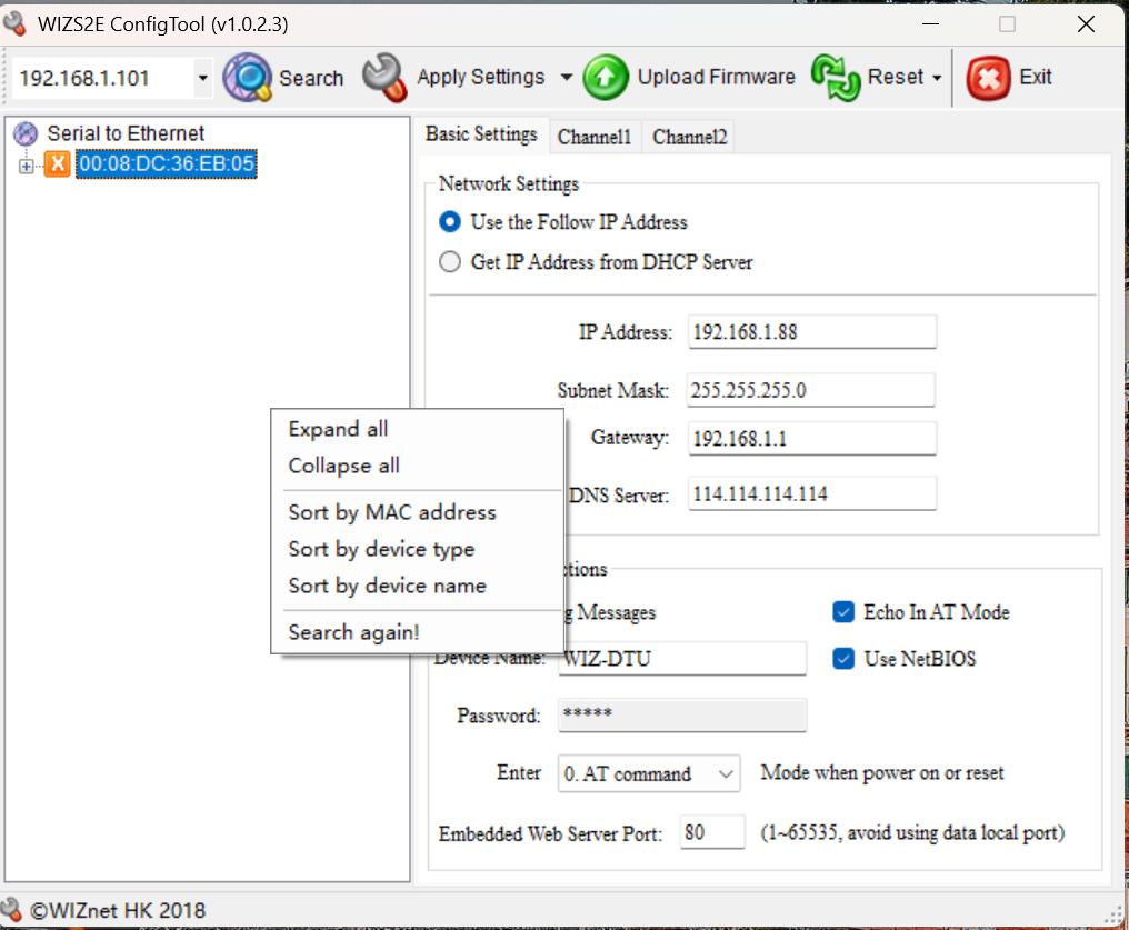 WIZS2E Config Tool is an upper computer configuration software that runs on the Windows operating system and is compatible with WIZ-DTU, WIZ-IP32, W5500S2E and W7500S2E series serial to Ethernet modules. Users can easily search, view, and configure various functions and information of WIZ-IP32 serial to Ethernet converter through WIZS2E Config Tool.