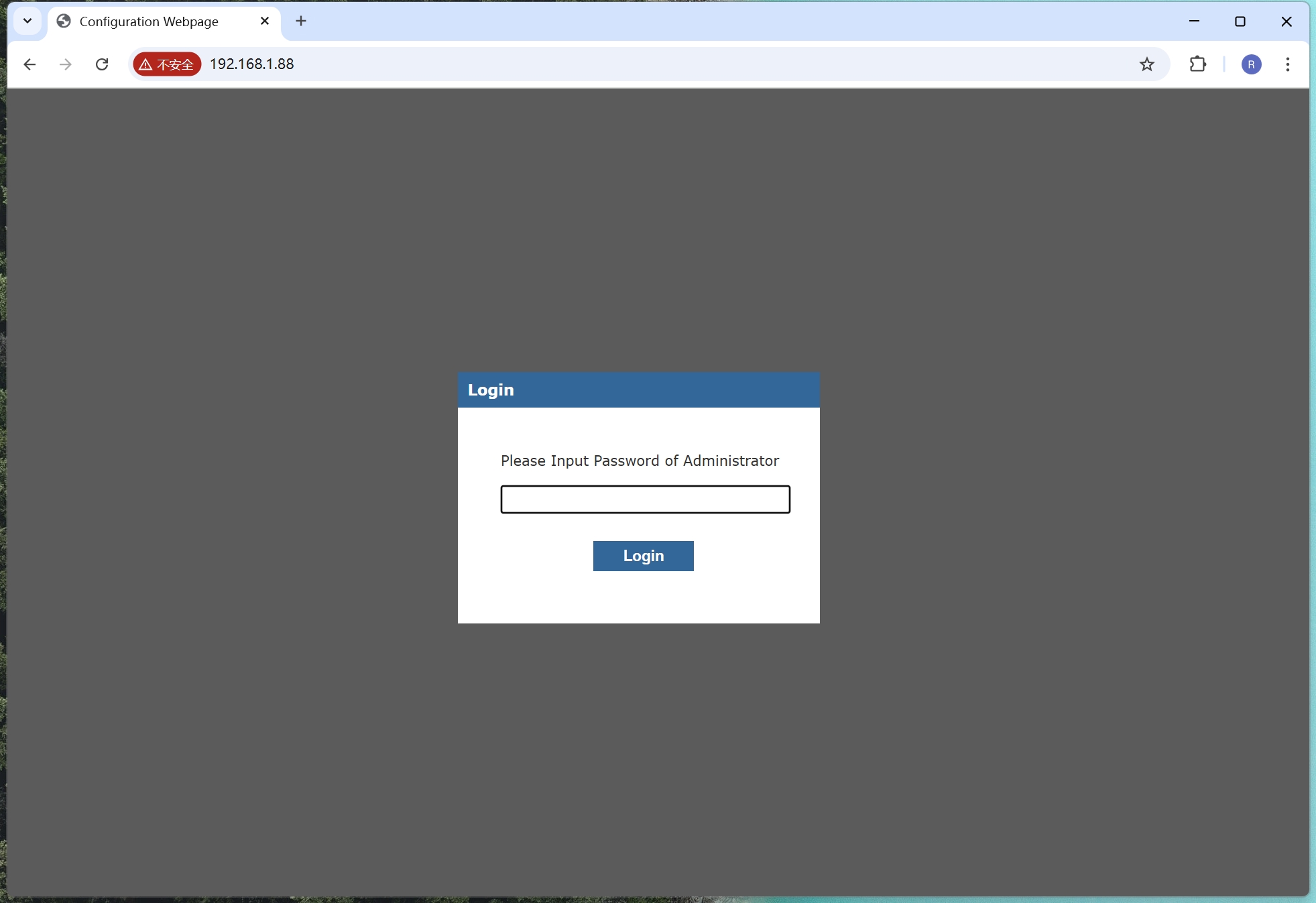 Open the Chrome browser, enter the WIZ-IP75 module's IP address in the address bar (the factory default is 192.168.1.88), and the login interface shown in the figure below will appear.