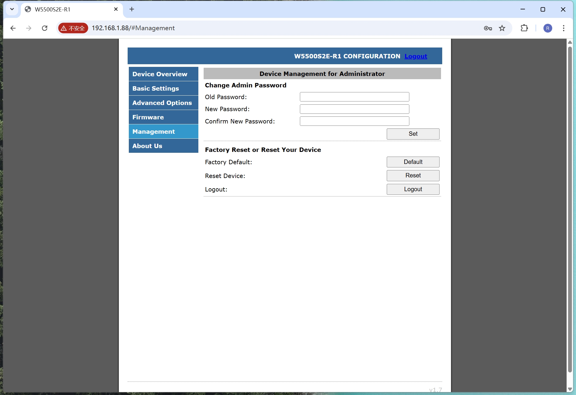 WIZ-IP75 supports web page configuration. We recommend using Chrome or Firefox. Other browsers may have display or functional issues. Let's take Chrome browser as an example to illustrate.