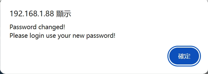 Set: Confirmation button for password setting. When the original module password is entered correctly and the new module password is correct, the page will prompt that the password has been successfully modified, as shown in the following picture. Click "OK" to jump to the login page.