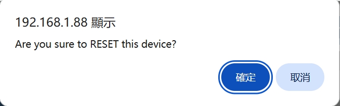 Reset Device: Reset Button to reset the module. It reset the module without saving any unsaved configuration. It shows the following window, click 'OK' and it will jump to the login page after reset.