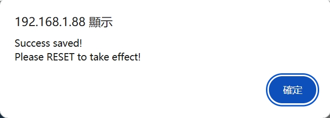 Click the "Save Settings" button. The webpage will indicate that the settings were saved successfully. You need to further click the "Reset" button to restart the module for all configurations to be effective.