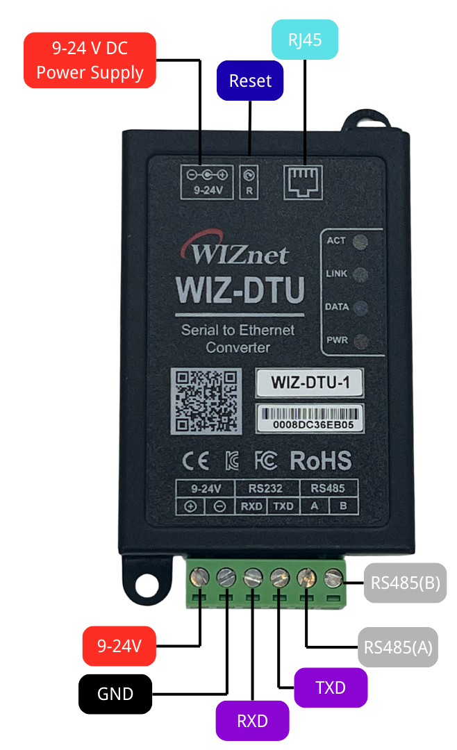 | RJ45 | Ethernet | Ethernet Port for WIZ-DTU |